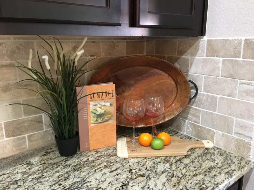 Good design also includes an element of utility. Can the space be used for everyday life in addition to being visually appealing? Do you enjoy fresh limes/lemons slices often? Make them a part of the vignette! Think artistically and also realistically. We LOVE the look and taste of Pellegrino, we also use and like the look of our wine glasses… both staples in the Adorned2Sell vignette game. Designing vignettes can be a win-win situation, where design meets efficacy!